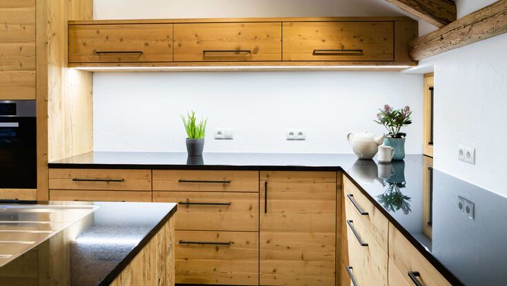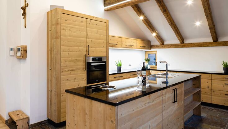 In unserer hauseigenen Werkstätte entstehen exklusive Möbel, passgenaue Schränke und langlebige Türen, stets stimmig zur Architektur von Bestand und Neubau. Dabei verarbeiten wir vorwiegend Holz – ein elementarer Rohstoff aus Tiroler Wäldern, dem wir uns verpflichtet fühlen. Unsere Bautischlerarbeiten verstehen wir als Ausdruck der Wertschätzung dieses Naturguts.
